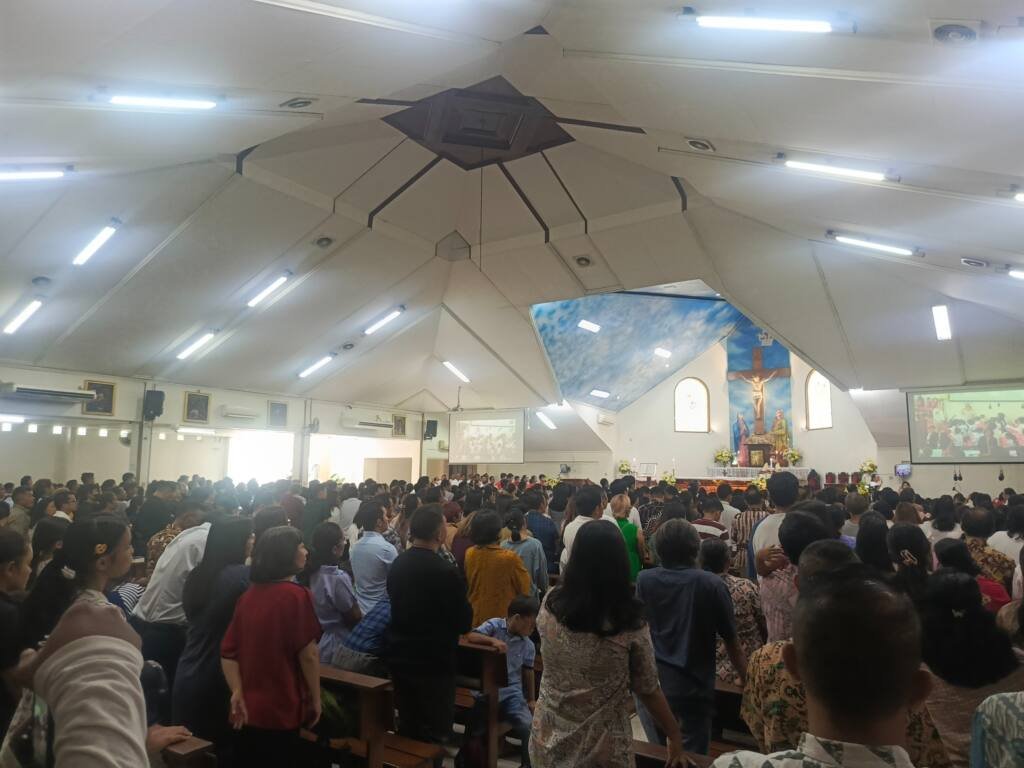 Mengusung tema “Keluarga Sinodal yang Misioner dalam Perwujudan Iman”, misa perayaan Paskah di Gereja Katolik St. Paulus, Depok, Jawa Barat, Minggu (5/4/2026) berlangsung khusyuk. Sebanyak 6.500 jemaat mengikuti Misa Paskah yang berlangsung dalam dua sesi besar.