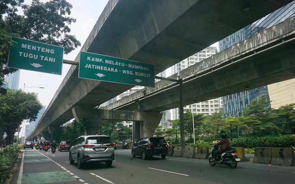 Jalan tol dalam kota dan Jl. Gatot Subroto juga terlihat tidak terlalu padat dibandingkan dengan hari biasanya. JaringBisnis/Yayus Yuswoprihanto