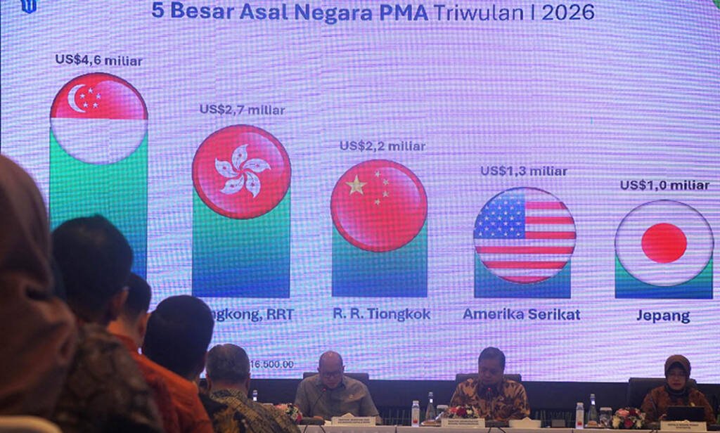 Menko Perekonomian Airlangga Hartarto (tengah) didampingi Menteri Investasi dan Hilirisasi/Kepala Badan Koordinasi Penanaman Modal (BKPM) Rosan P. Roeslani (kiri), dan Kepala BPS Amalia Adininggar Widyasanti memberikan keterangan pers tentang Realisasi Investasi Triwulan I/2026 dan Implementasi KBLI 2026 di Jakarta, Kamis (23/4/2026). JaringBisnis/Yayus Yuswoprihanto