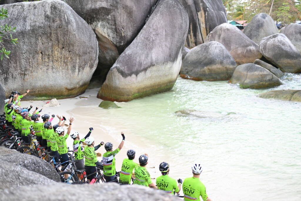Jaring Bisnis (4/2/2026) – GFNY Riders, sebutan bagi pesepeda yang pernah bergabung dalam kegiatan GFNY Indonesia, melakukan Group Ride Belitung 1, yang menjadi Road to GFNY Belitung 21 Juni 2026. Mereka melewati jalan aspal Belitung yang halus, dengan pemandangan asri di kanan kiri. Rute GFNY Belitung 2026 ini dihiasi oleh geopark -jajaran batu-batu andesit raksasa purba, terutama yang berada di pesisir pantai. Foto: Gilang (JB/02/GlG)