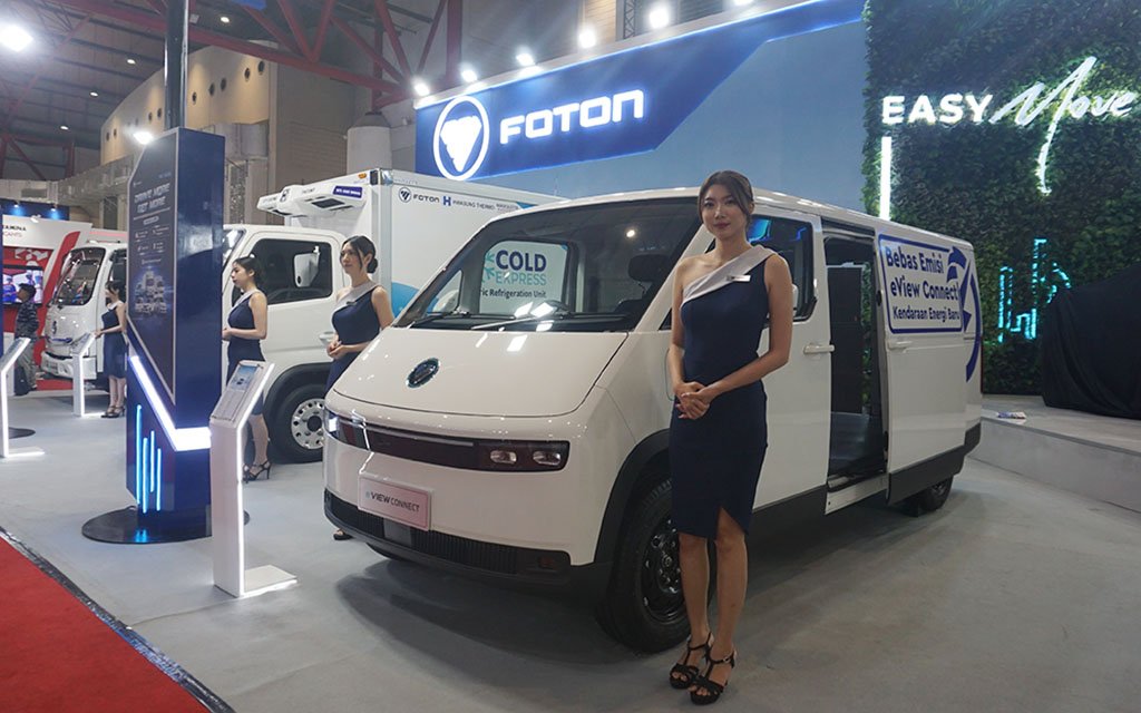 Foton menampilkan kendaraan energi baru eView Connect. JaringBisnis/Yayus Yuswoprihanto